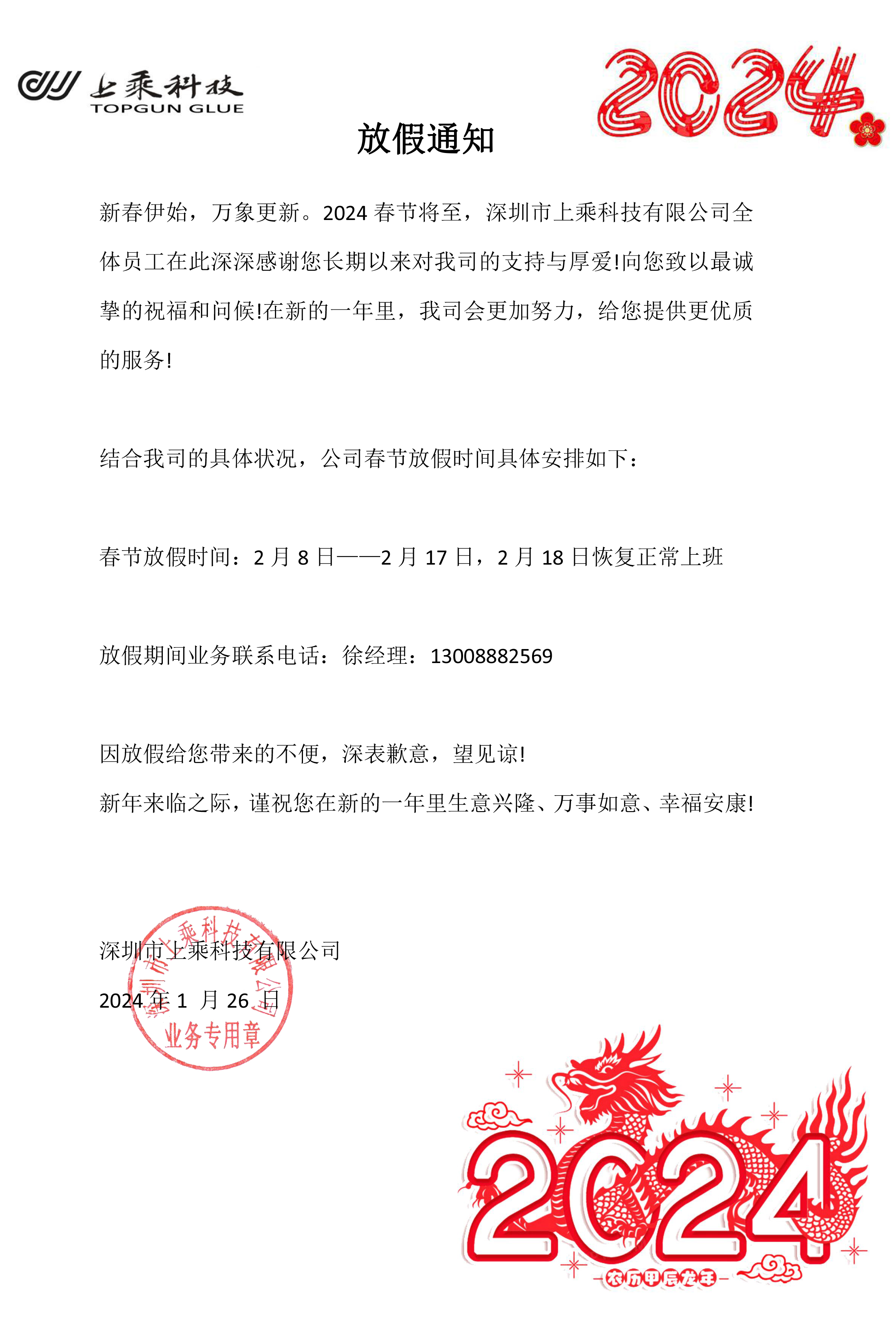 深圳市J9·九游会「中国」官方网站 2024年放假通知