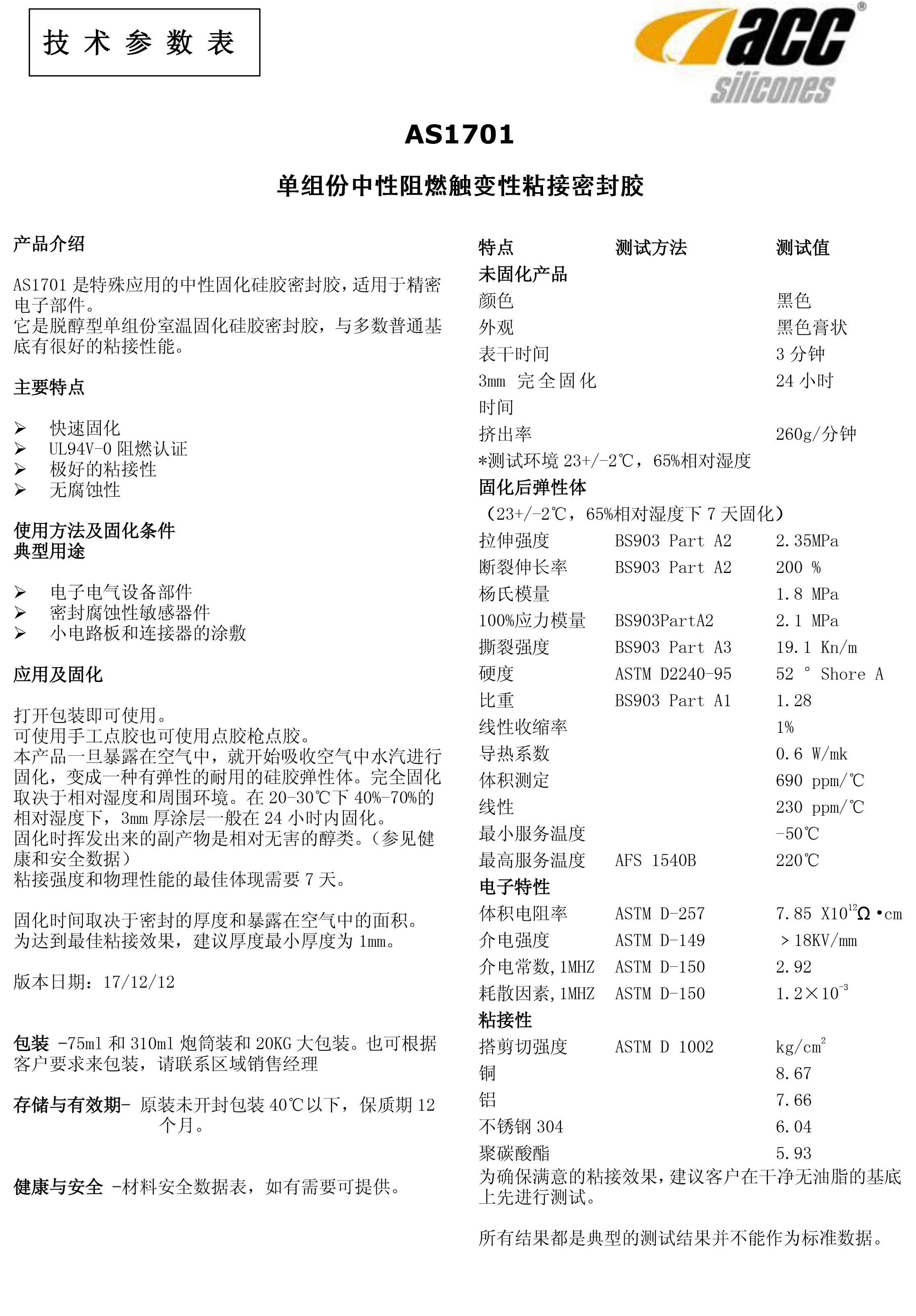 原装进口CHT单组份中性阻燃触变性粘接密封胶ACC AS1701粘接剂